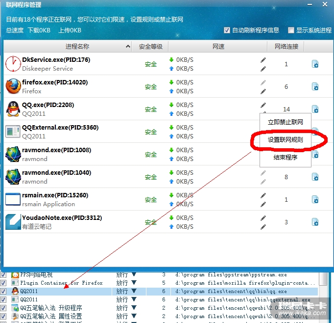 在联网程序中打开“设置联网规则”,仅会打开规则编辑器,而不会指定到相应的程序上边。