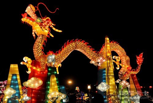 2月2日在广西百色市平果县文化公园拍摄的巨龙腾飞造型灯饰。当日,革命老区壮乡大石山区广西百色市平果县2012年元宵节艺术灯会在该县文化公园开灯迎客,数十盏各具特色的造型灯饰在夜幕中灿烂开放,吸引游客一睹为快。新华社发(罗郅肯 摄)