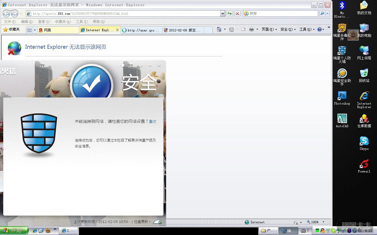 使用2012版几天发现!瑞星防火墙会出现断IE的问题!!