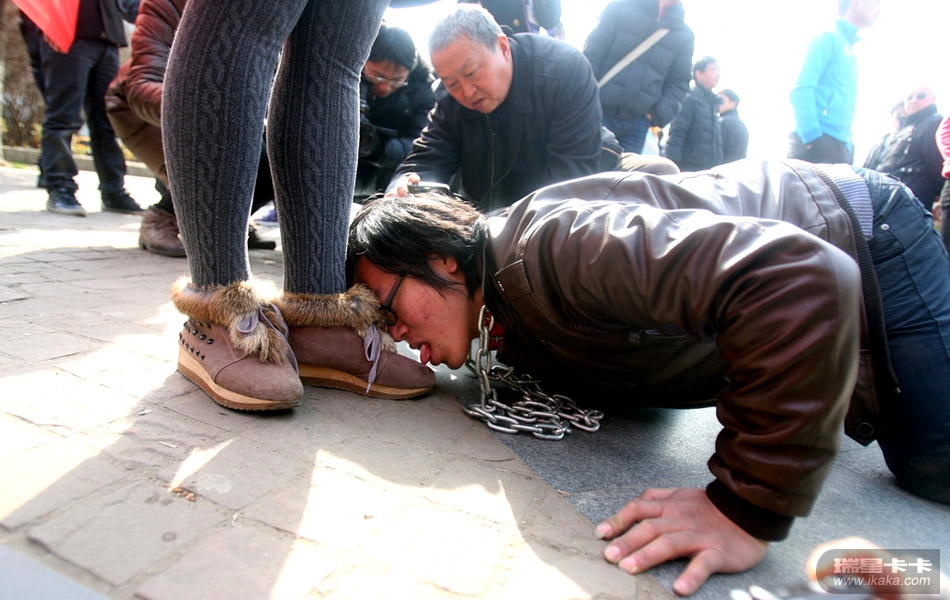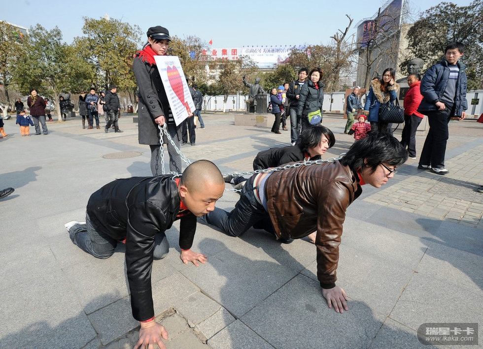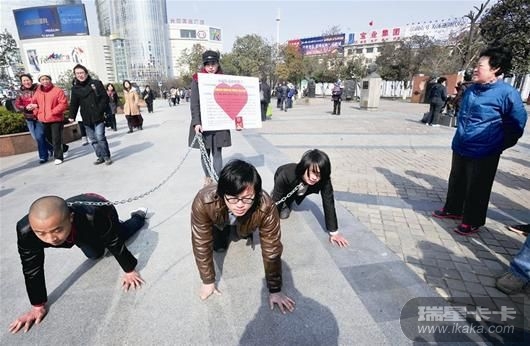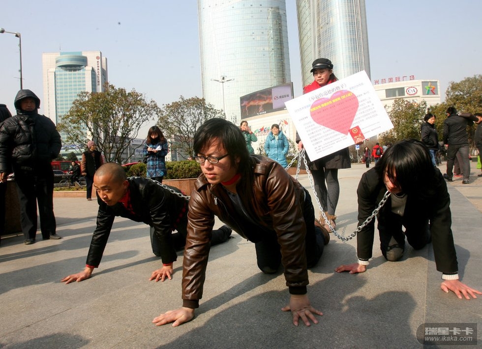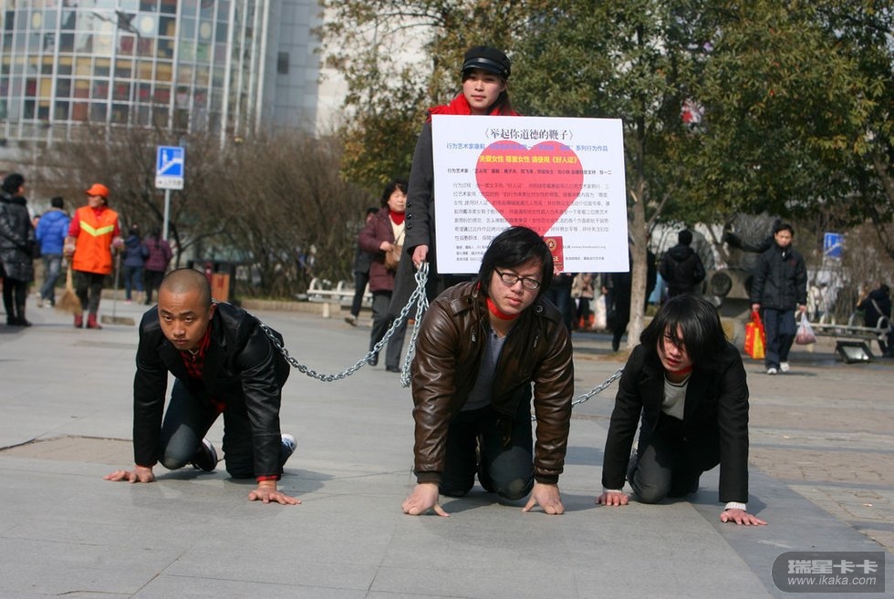 此三条狗乃某大学的学生搞的宣扬女性地位的一个活动,太过分了,男尊女卑不好,女尊男卑更不好了。