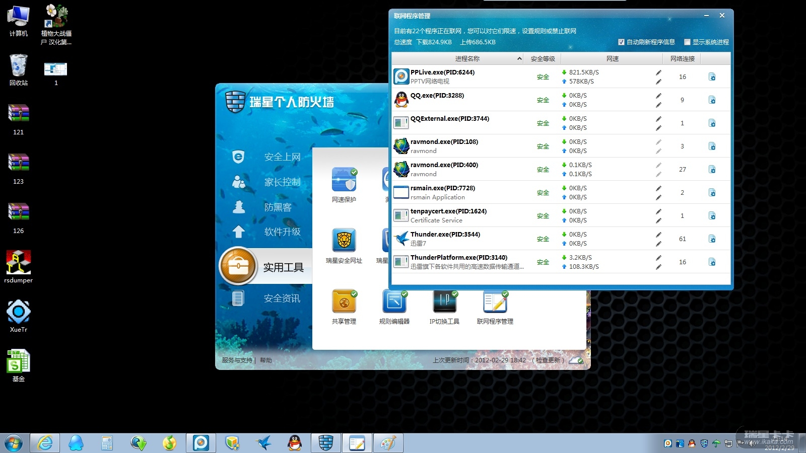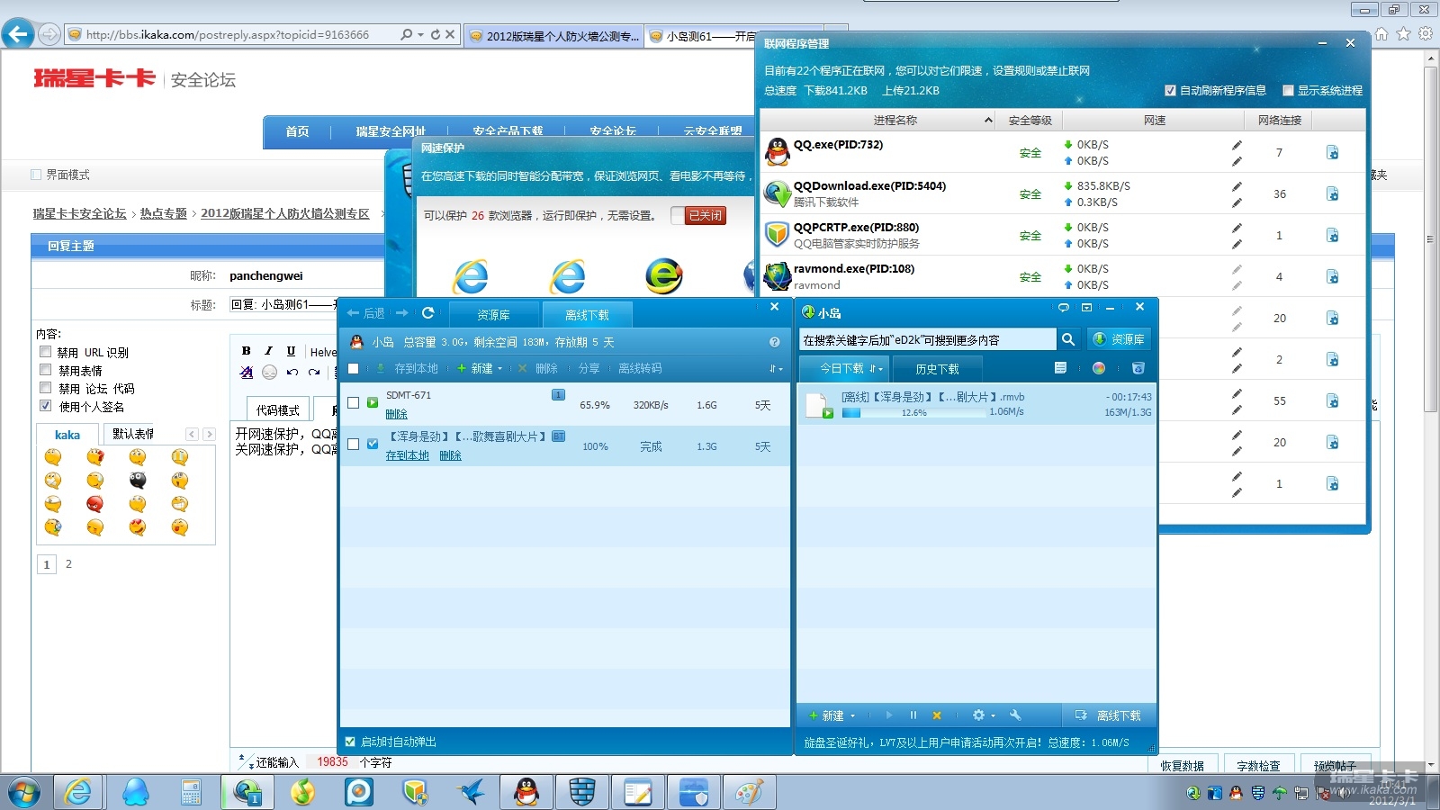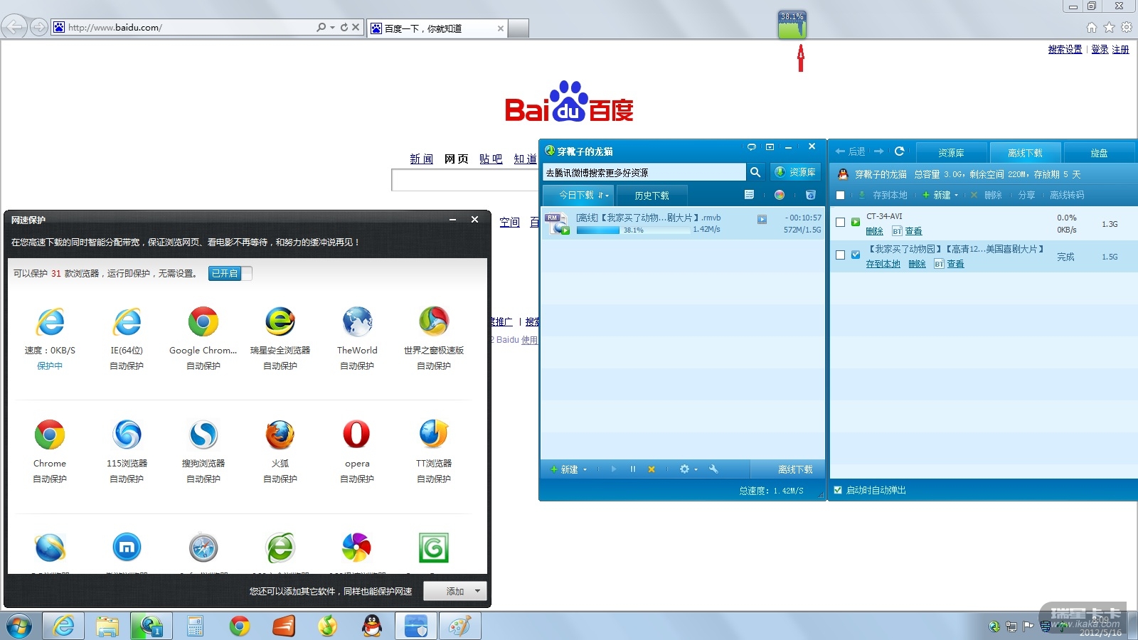 如打开IE浏览器的网速保护,打开一个IE窗口,即是没有刷新IE页面或者其他操作,PPTV都无法获得足够的带宽