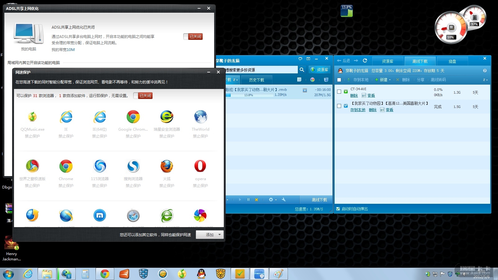 2.增加网速分配比的设置,例如在已知10M的带宽下,“网速保护”列表内的软件可以保证最低多少带宽,这个类似于W7用于后台windows update的保留带宽