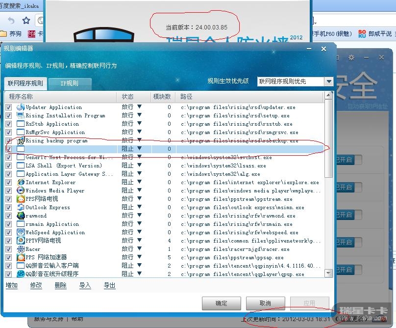 瑞星防火墙2012的规则编辑器中依然存在空白路径规则问题