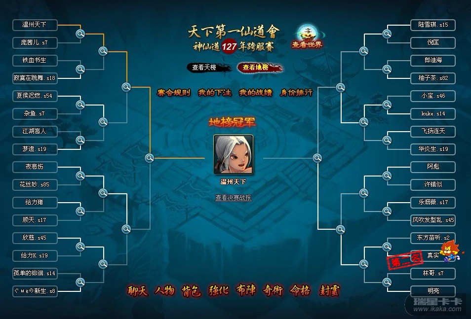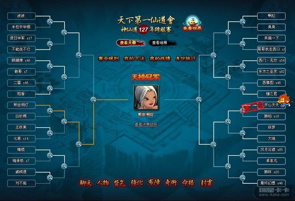 瑞星三区恭喜开心天天进入第二届天下第一仙道会跨服赛天榜并取得第二名的好成绩!
