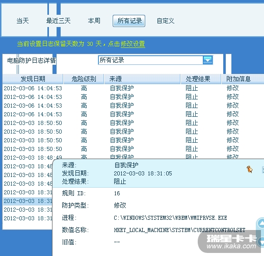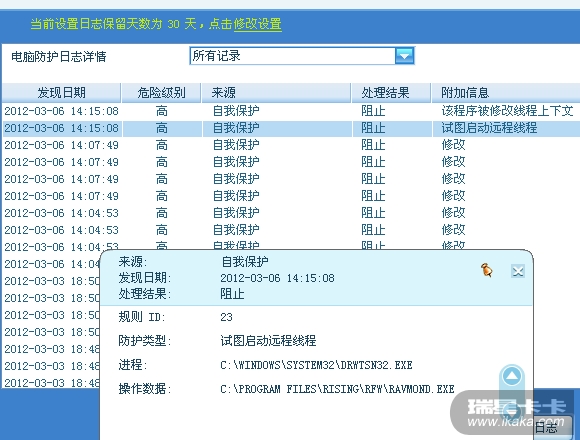 请您不保留用户配置文件卸载瑞星个人防火墙,再重新安装后观察自我保护的问题是否复现。