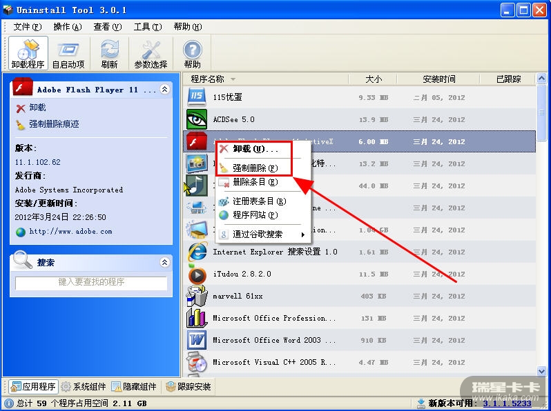 附件里Uninstall Tool应该可以帮你解决问题,见图: