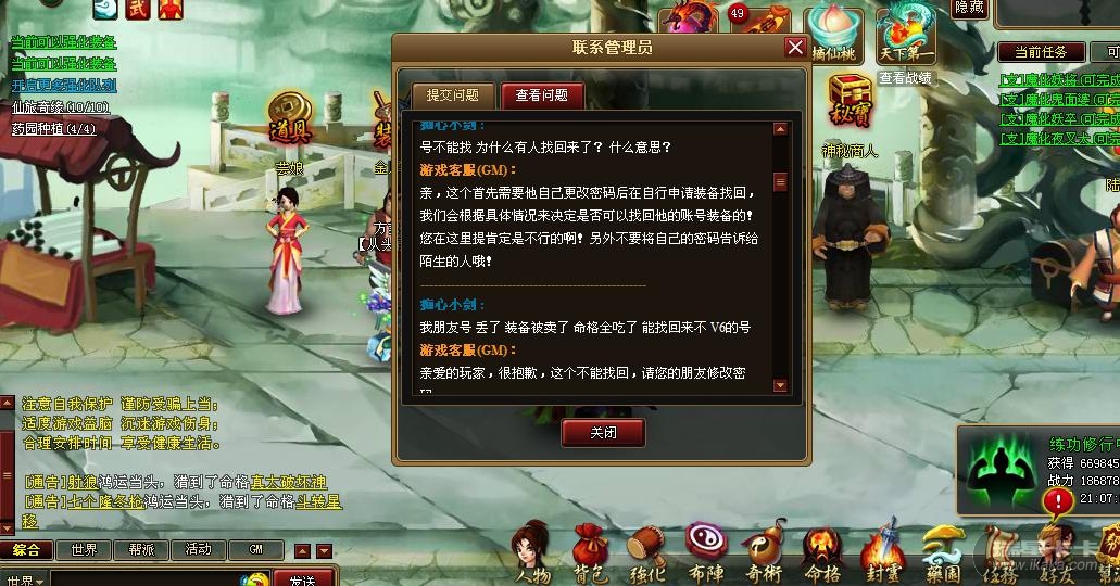 全区人都知道,吟鲧不玩了,把东西都卖了,命格和了,他还跟大家道别了。你小剑搞到别人的号,又要GM给你恢复。像这样的也给恢复,GM你们的公信力何在,坚决不支持给他恢复
