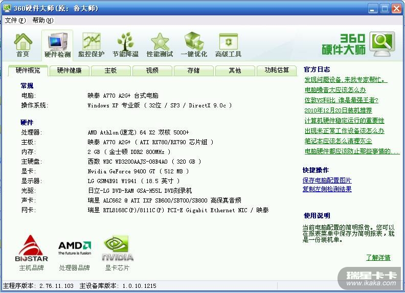 XP系统只能识别出3G,换W7 上8G内存没问题,硬盘上1.5T,显卡上1G的