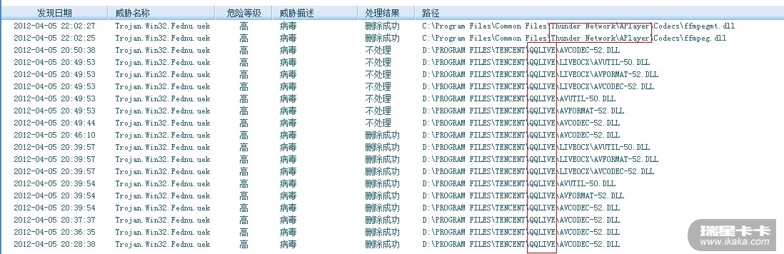Trojan.Win32.Fednu.uek 高 病毒 删除成功 C:\Program Files\Tencent\QQLive\LiveOcx\avcodec-52.dll
