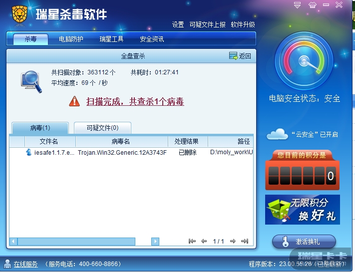 感谢您对瑞星的支持!