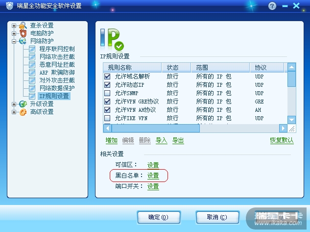 如何用瑞星防火墙设置只允许某一IP段的设备访问这台电脑呢。