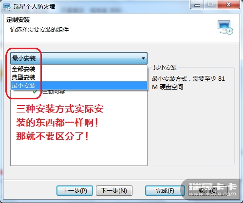 RFW2012定制安装分为全部安装、典型安装、最小安装三种方式,但是貌似这三种安装的东西是一模一样的耶。既然如此,那就没必要分这三类了吧。