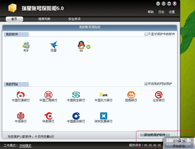 在试用瑞星2012的时候,希望贵公司的相关工作人员添加保护迅雷尊享版软件在账号保险柜5.0。(如图所示)