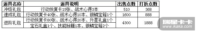 、行动恢复卡*3活动二、冲级、速成、进阶礼包再度上线