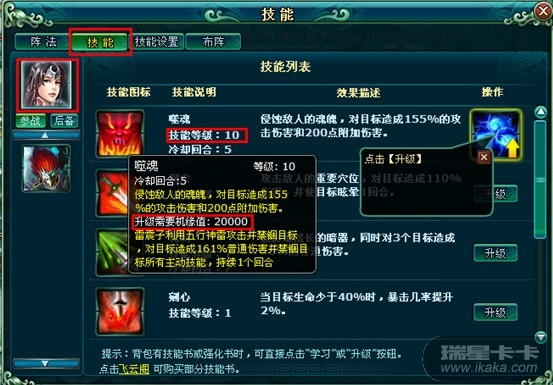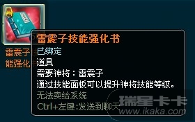 2、神将技能只能用神将天书进行升级,每本神将天书可以使神将的技能提升一级;