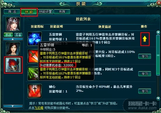 1、达到一定的机缘值之后,玩家可通过神将天书,对神将技能进行升级;