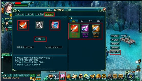 2.玩家可在仙园——洞府——锻造台——法宝炼制——神将法宝进行神将法宝的转化;