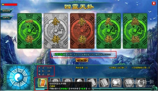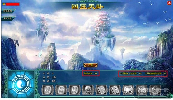 8、玩家每天每轮次卜卦,第一次系统发放得5张卦组成的卦象(玩家没有换卦),等级与卦象两者同时满足的条件下,即可获得额外奖励;