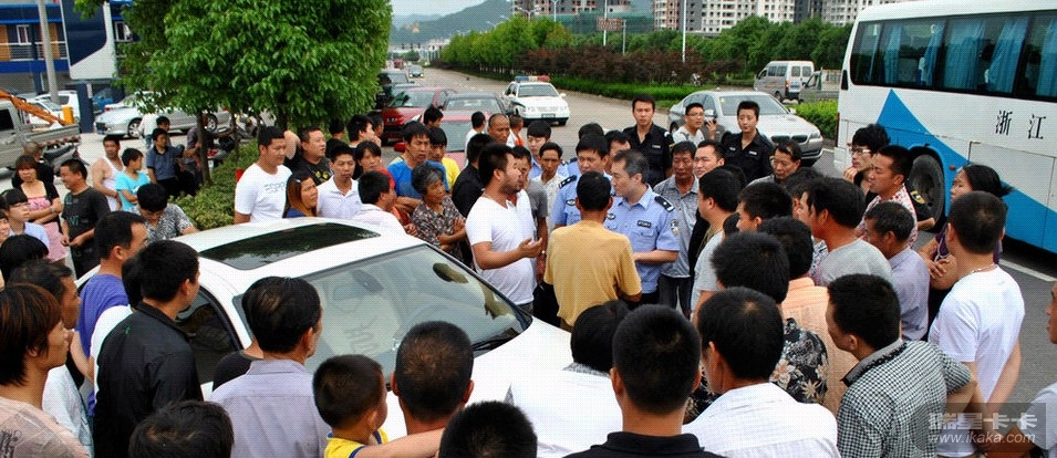 2012年6月16日下午,浙江温岭市城西街道合岙村东风标致4S店路口,合岙村的村民围住一辆白色宝马车不让警察开走。当天下午14时35分,浙江温岭市城西街道合岙村东风标致4s店路口,一辆白色宝马轿车在横穿路口时与一直行三轮车发生碰撞,由于宝马车受损严重,骑三轮车的外地务工者不等交警到来就骑车离开现场。而开宝马的女子男朋友则叫来三名开马自达6的闲散人员,将现场围观插嘴的4位村民殴打致伤,后被当地合岙村的村民们集体追赶才弃车而逃