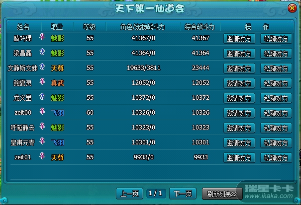 3.点击快速组队,会显示当前本服在线的所有玩家,按照综合战斗力排序,可以邀请列表上的玩家,如下图: