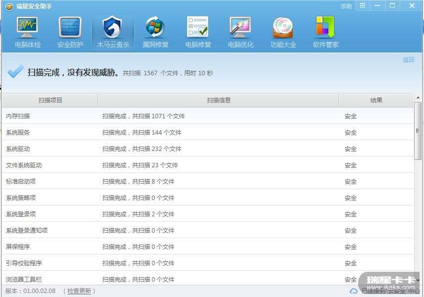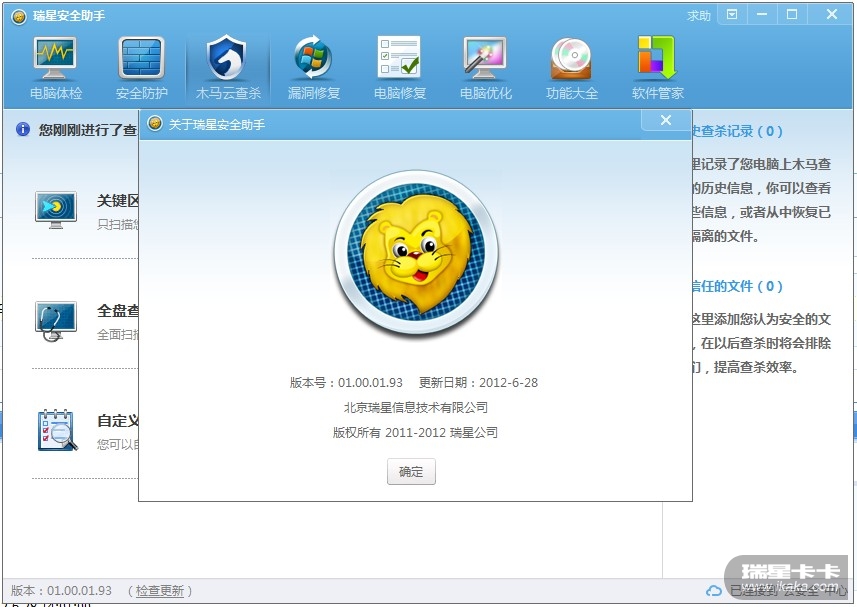 请将瑞星安全助手升级至最新版本扫描尝试。