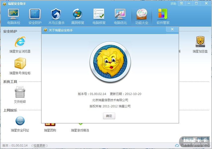 在试用瑞星安全助手的时候,发现了一个BUG.(如图所示)