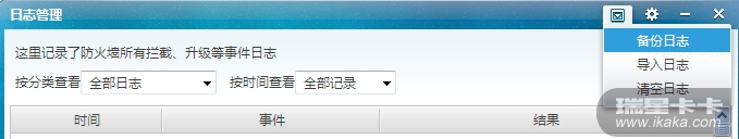 鼠标右键托盘处防火墙图标>>查看日志>>功能菜单处选择备份日志,将生成的db文件压缩上传