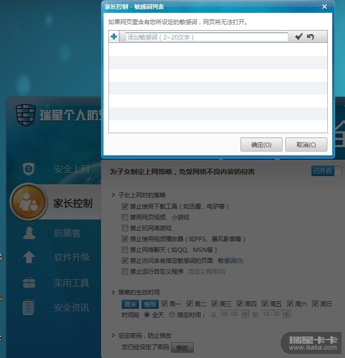 瑞星个人防火墙家长控制有问题