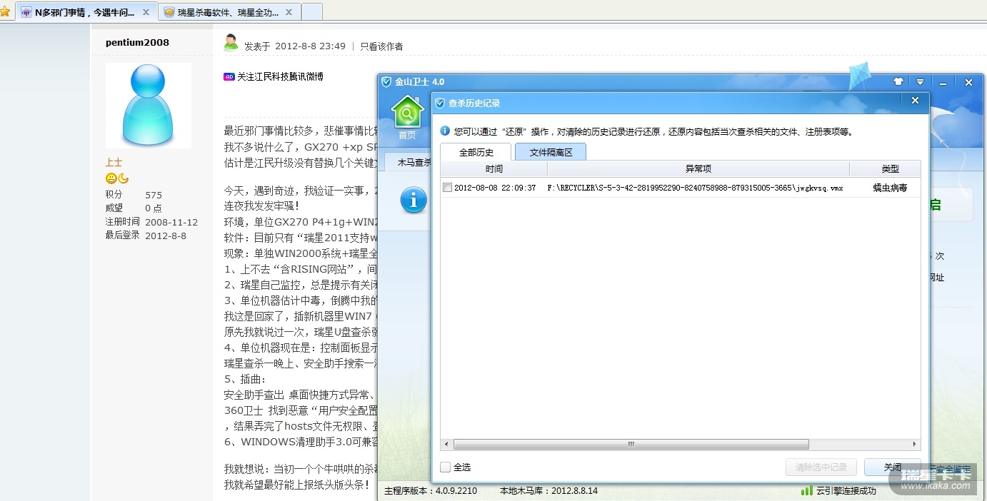 今天,遇到奇迹,我验证一实事,都到2012年了,杀毒软件反过头来看历史,都“假功夫”一堆!