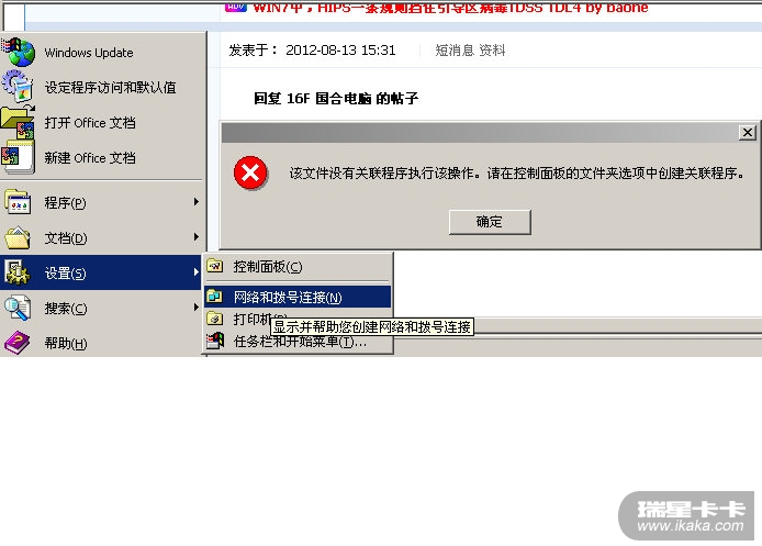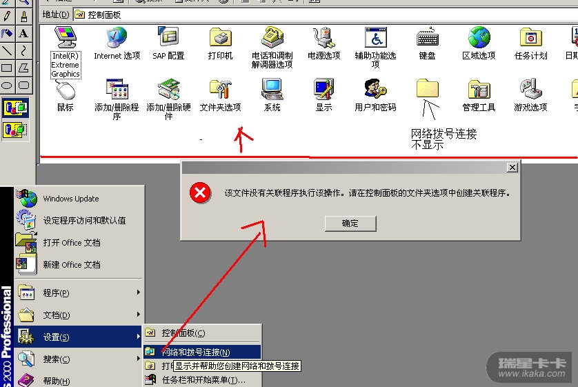 4、单位机器现在是:控制面板显示异常、添加删除无法启动、网络连接找不到并联程序、瑞星网站下载不了!