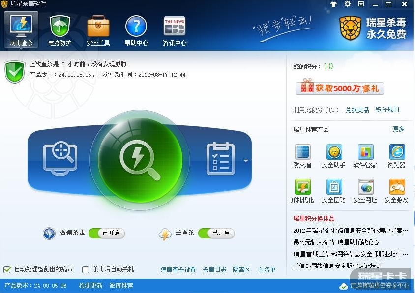 主界面左上角的 狮子图标和瑞星杀毒软件 是不是小了点了呀,整个看上去,不太协调。