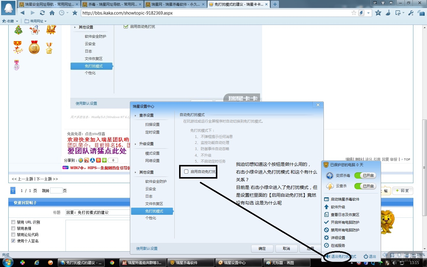 首页 » 个人产品讨论区 » 瑞星杀毒软件 » 瑞星杀毒软件V16+ » 免打扰模式的疑惑 不知道是BUG 还是就这样的设计 求解