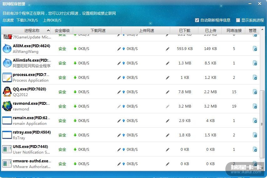 感觉瑞星防火墙2012看程序网络连接的端口及所有程序的网络访问情况没有瑞星2011那么的人性化,感觉好麻烦了。还没有360的流量防火墙里的网络连接查看方便。强烈建议修改网络连接查看方式,比如端口访问情况之类的。