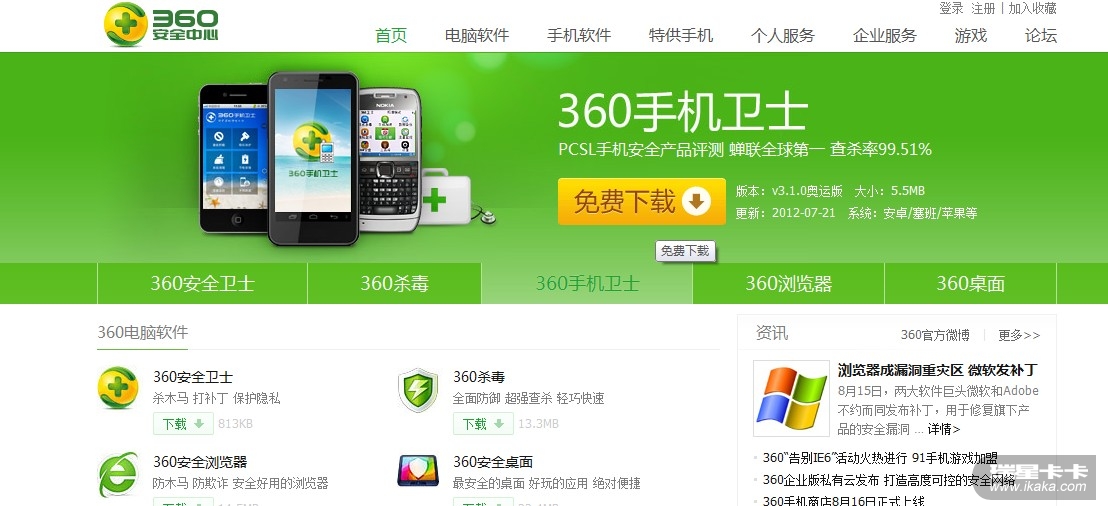 今天看360官方网站的时候,发现360官方网站有所变化,360官网换了,咱的瑞星什么时候换换。