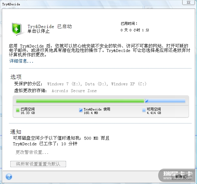 今天,装上V16,再次运行Acronis True Image2011,没任何问题。进入Try& Decide模式,也没问题!