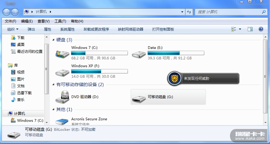 2、先不重启(重启也是瞎菜)。先看看安全软件的U盘防护咋说。结果....结果....金山卫士这个算忽悠吗?