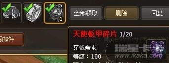 有没搞错呀,返还给我的还是三个“天使板甲碎片”!。请返还我三个整个的“天使板甲”呀!