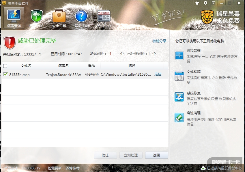 不是误报,那是病毒,但是瑞星修复那个文件失败了。