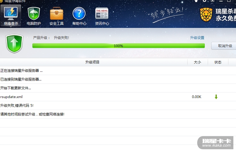 断网下点击升级,竟然提示“已连接到瑞星升级服务器”?!