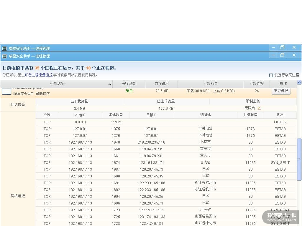 下文件夹(sys)里面的内容 还是一样卡 瑞星助手的老毛病了(需要卸载在重新安装) 打开进程一看 还