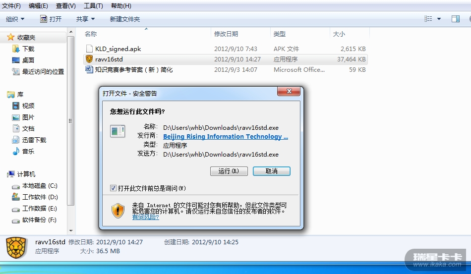 安全警告是由于开启了UAC,然后从网页下载就会提示,属于正常的。兼容性问题需要远程,短消息QQ号给瑞星12号工程师。