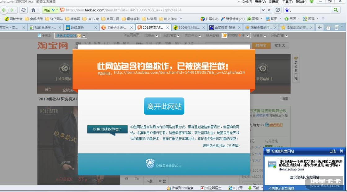 连淘宝网 都被瑞星认为是钓鱼网站,,,,我晕 ,要是这样瑞星你还要我开啥网站啊、、、、、