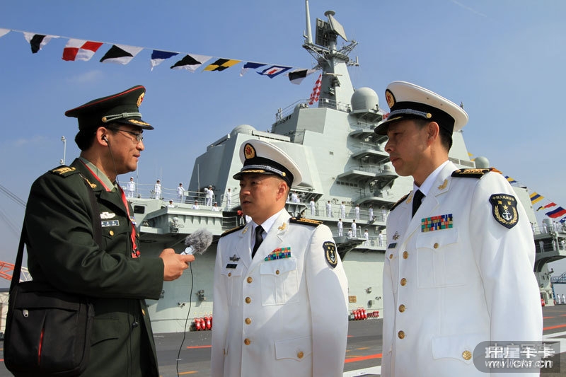 中央台记者梁永春采访中国第一艘航空母舰舰长张峥、政委梅文
