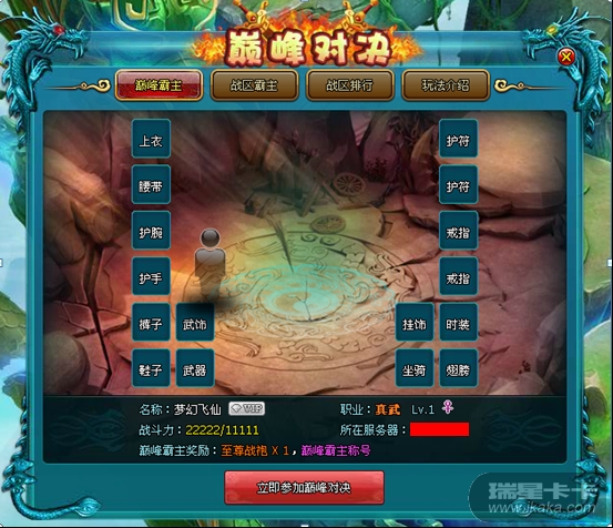 巅峰对决,为让各时空的顶尖高手在生死对决中突破自我,到达更高境界。为了表彰最强高手的荣耀,巅峰对决中排名第一将获得代表霸主身份的至尊战袍和巅峰霸主称号,以表最强之威严和实力,让众仙以此为目标不断提升自我,早日到达飞仙之境界。功能简介:1.