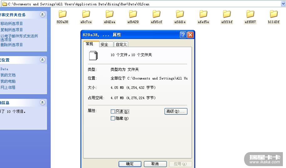 lz安装的是瑞星v16嘛,软件版本是多少?操作系统类型是什么?C:\Documents and Settings\All Users\Application Data\Rising\Rav\Data\OLScan好几个G了,把这个发截图来看一下。
