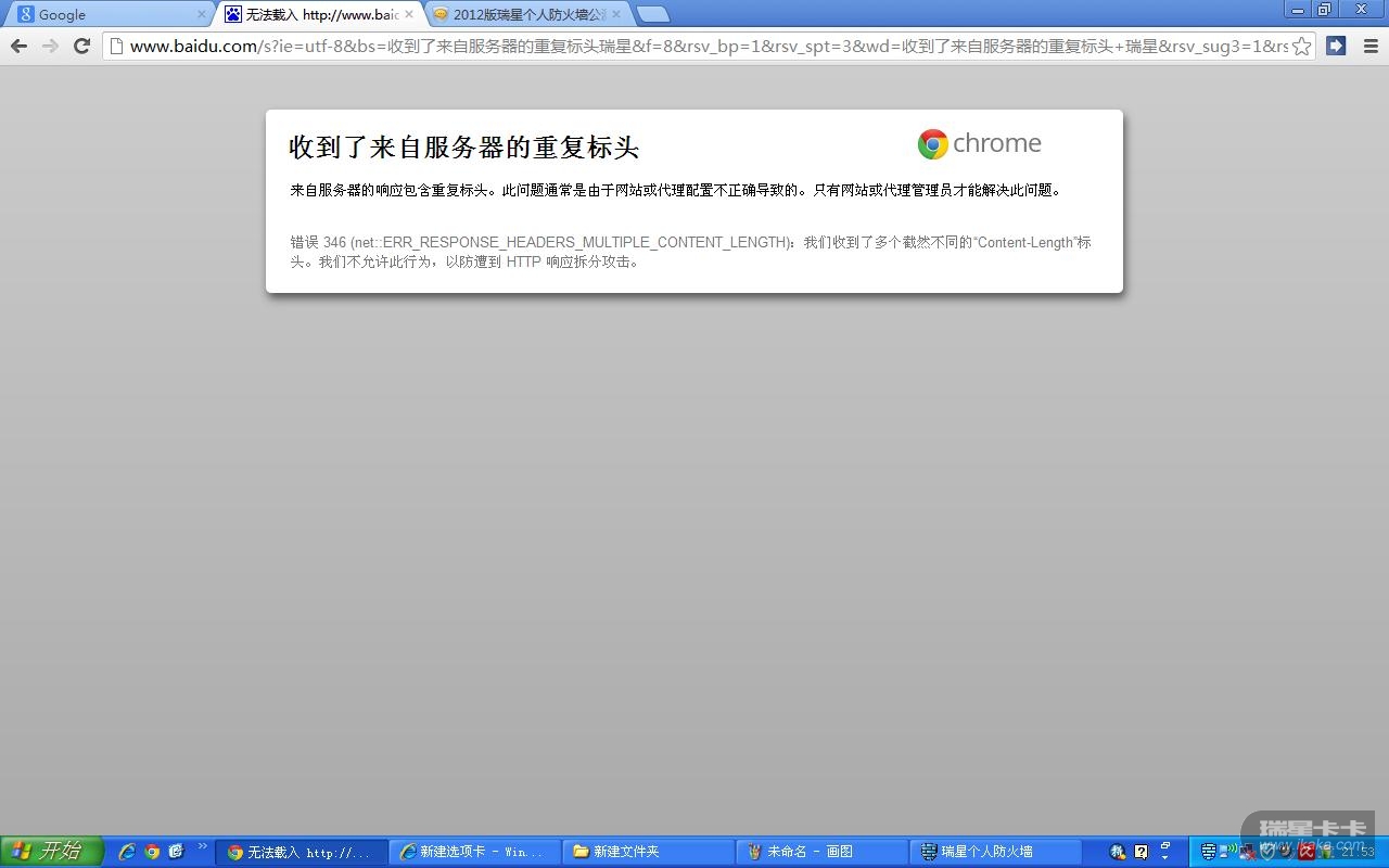 如图所示,谷歌chrome浏览器出现“收到了来自服务器的重复标头”错误