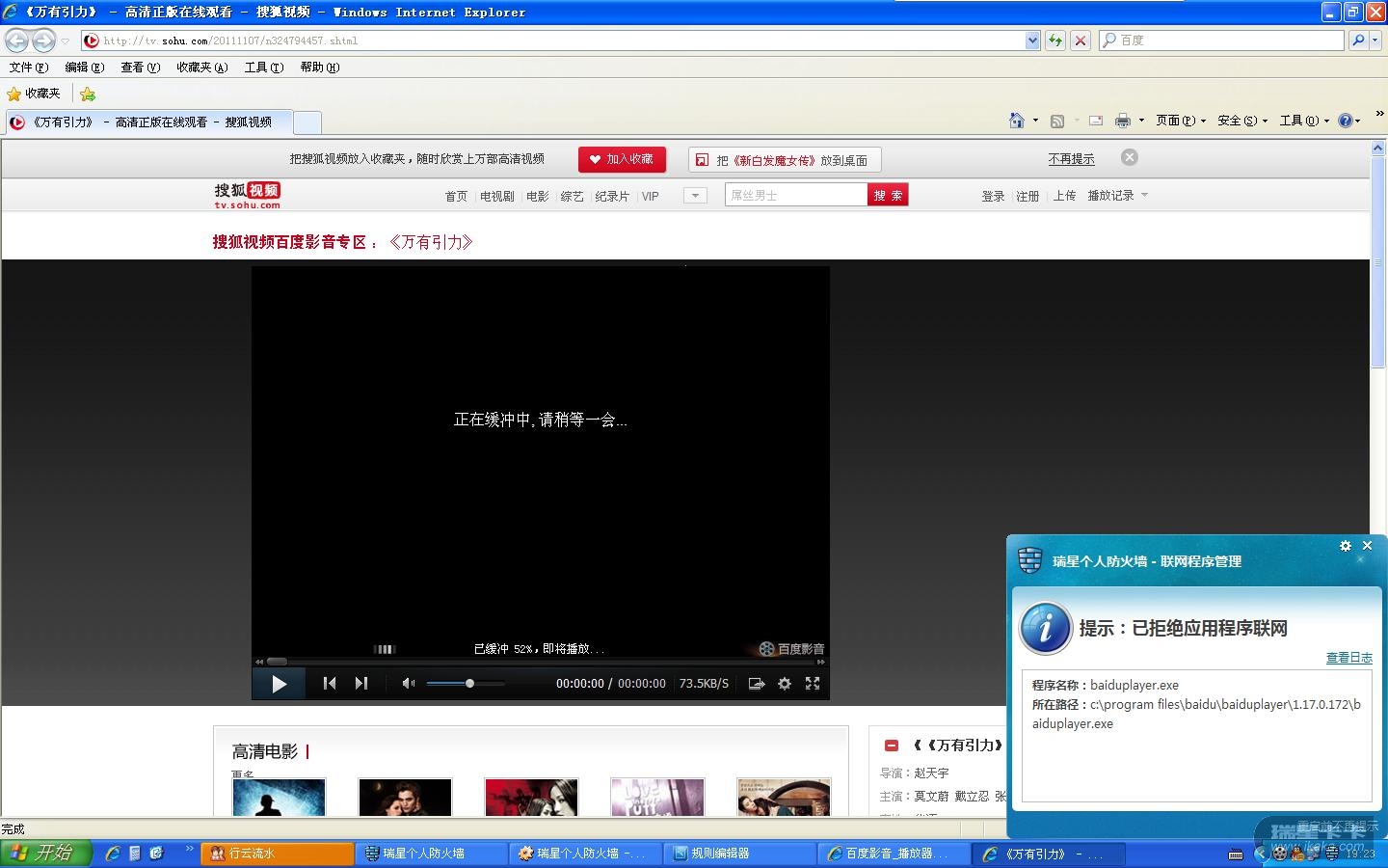 加上程序连网阻止百度影音,百度影音网页还是能够播放视频节目。