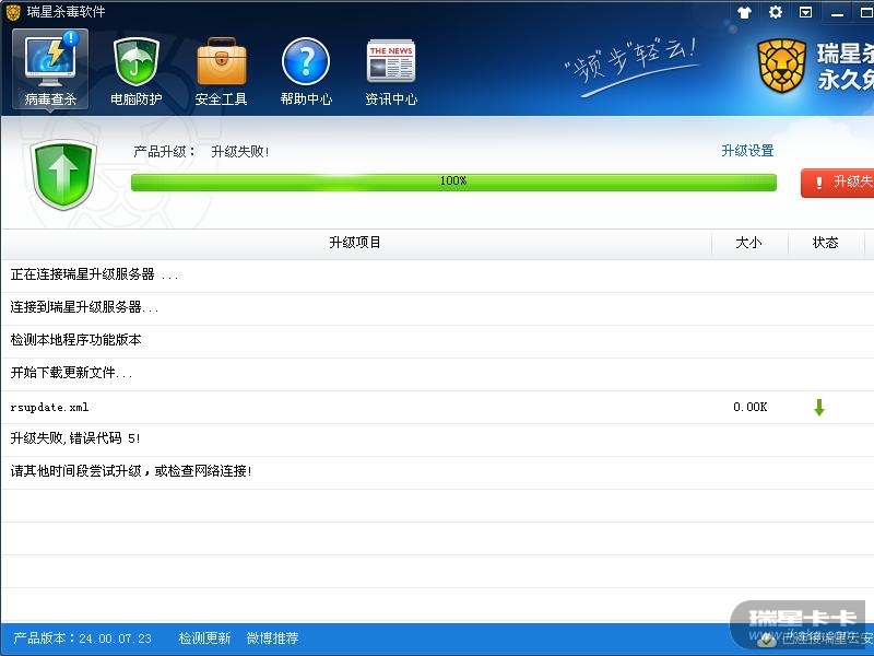 回复 2F 瑞星工程师12 的帖子补充以下信息:1.操作系统类型是32位的;2.V16程序版本是:24。00。07。23。3.IE浏览器版本IE8 ;8。0。6001。18702。4。%temp%\RsdSfxTmpAll\setup.exe.log和%temp%\rsinstall.exe.log