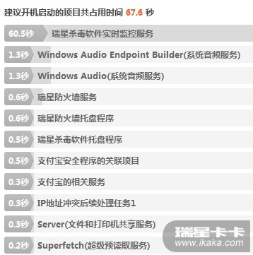 建议楼主暂时卸载360安全卫士,安装瑞星安全助手观察开机时间是多少?