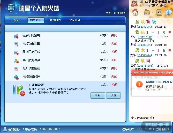 修复方法:开始>>程序>>瑞星个人防火墙>>修复>>下一步,将保留用户配置文件的勾选去掉